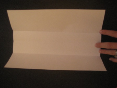 Step 1: Fold a piece of paper, cardstock, or construction paper in thirds. I didn’t get out the ruler and measure ya’ll, but if you are a perfectionist…measure away!