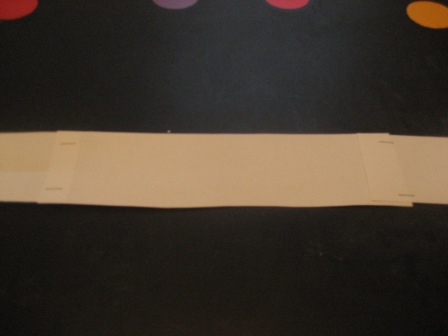 Step 3: Staple –or tape- the ends together. I staple with the flat side on the inside of the strip so it doesn’t irritate their forehead.