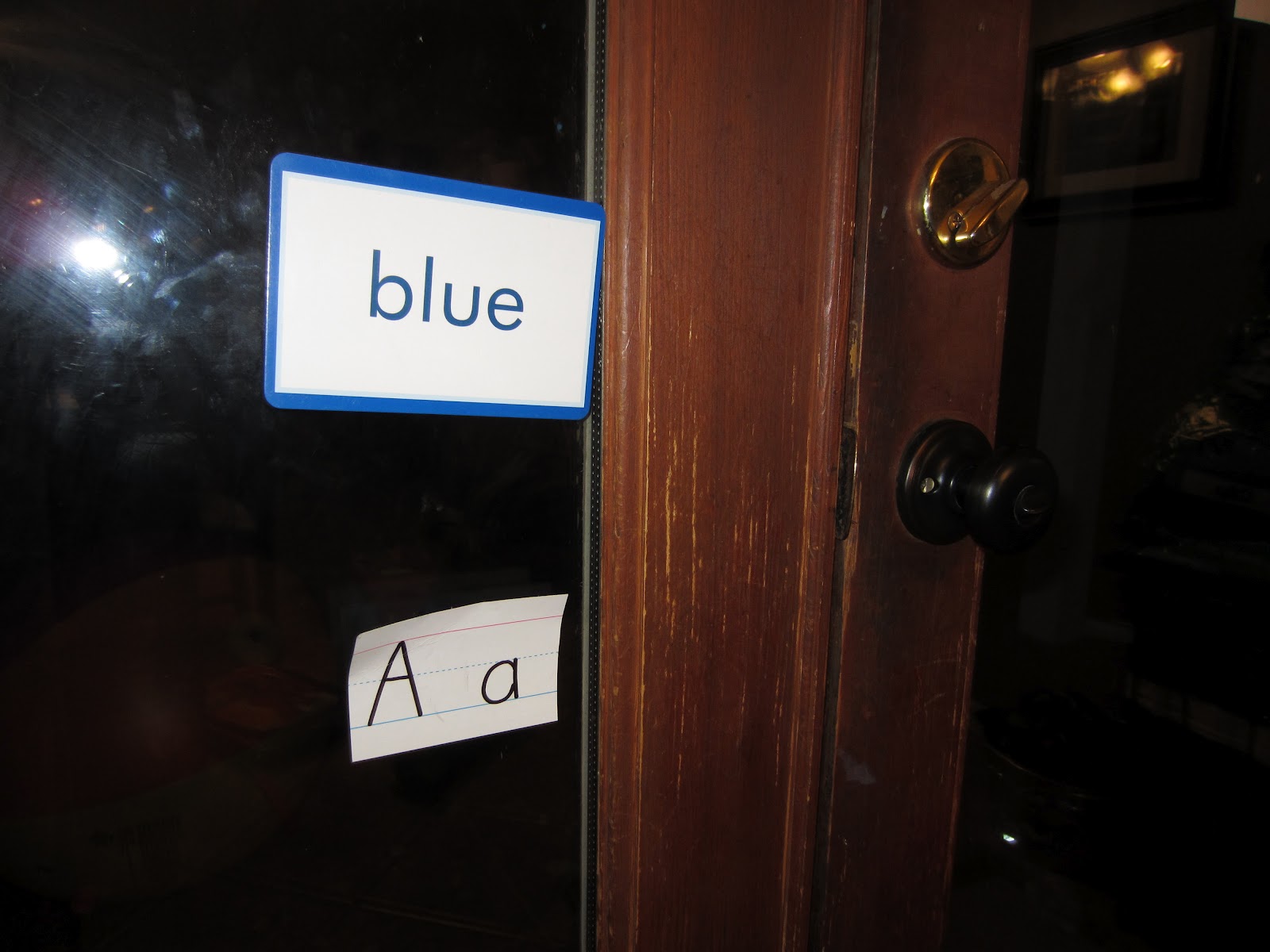 Or Bible verses! Or pictures of animals for toddlers! The learning opportunities are endless! Keep your one word/letter/color/number on the door for the entire week and any time you and your child leave, make sure to hit it on the way out! Be careful, though, it’s super easy to just remember the SOUND of this repetitive activity without looking at the actual word/letter, so make sure your child is also LOOKING at the card on the door frame to also remember its visual representation as well.